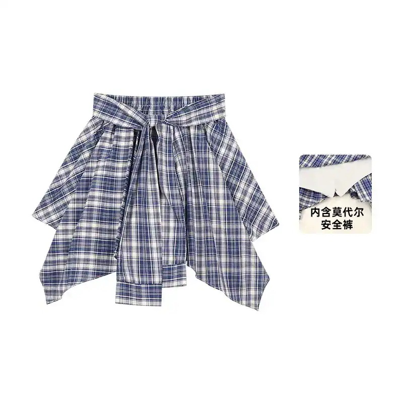 【超激安い! 】子供服 女の子スーツ夏2026新ラウンドネックアルファベットT不規則デザイン感チェック半身スカート 韓国 子供服
