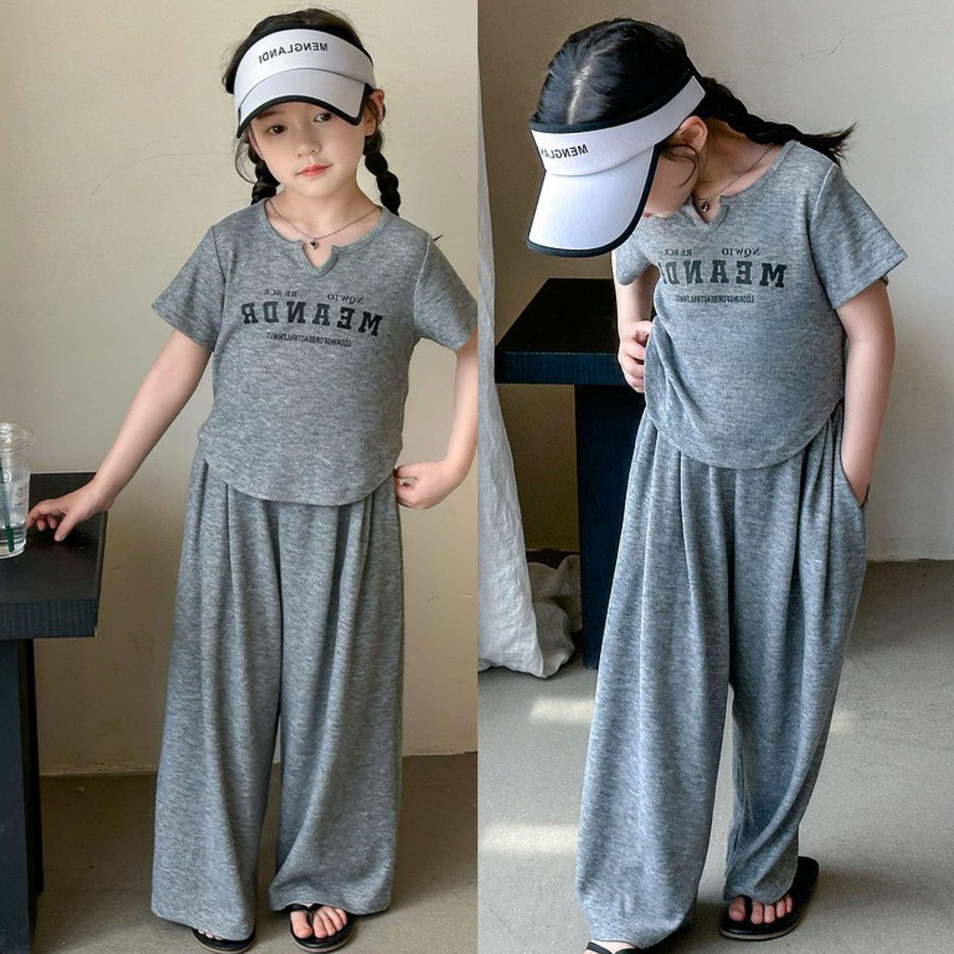 【超激安い! 】子供服 女の子スーツ夏の新作涼しげ半袖Tシャツ+カジュアルワイドパンツ2点セット 韓国 子供服