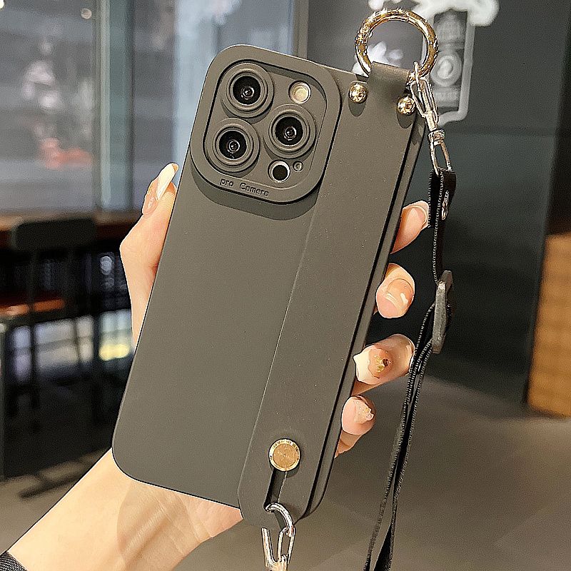 スマホケース 純色リストバンドホルダーiPhone 14ケース13 promax斜め掛け11/12ストラップxs全ケース6/8