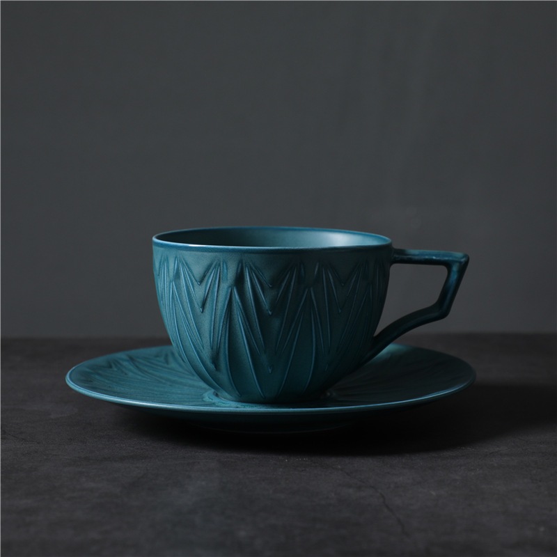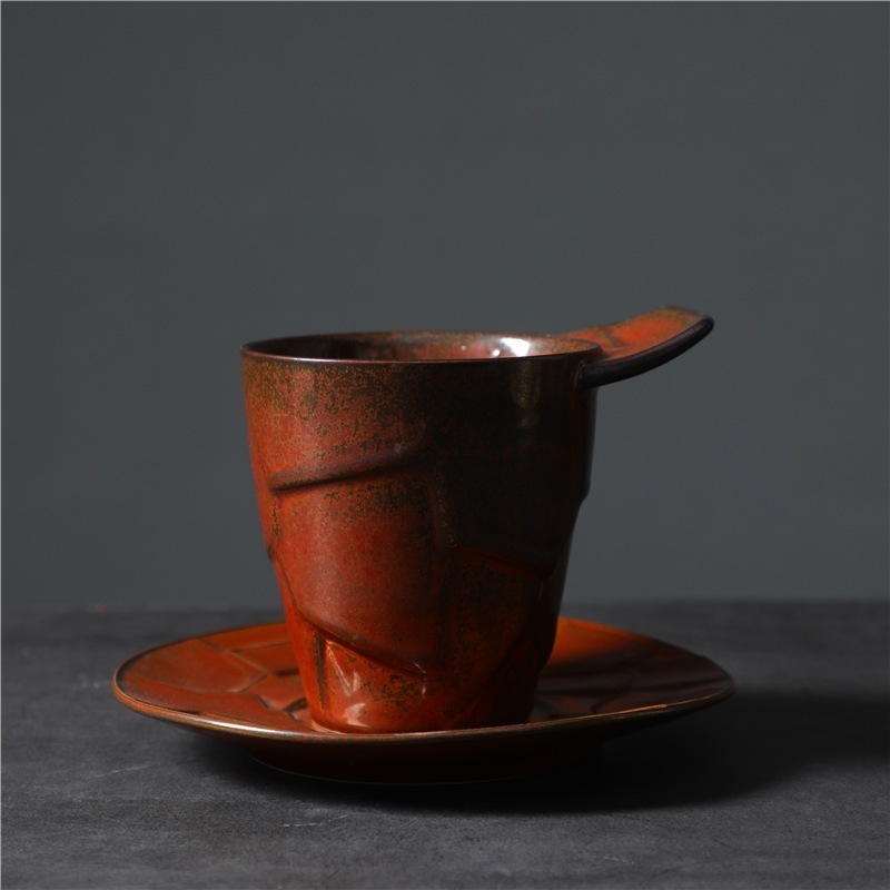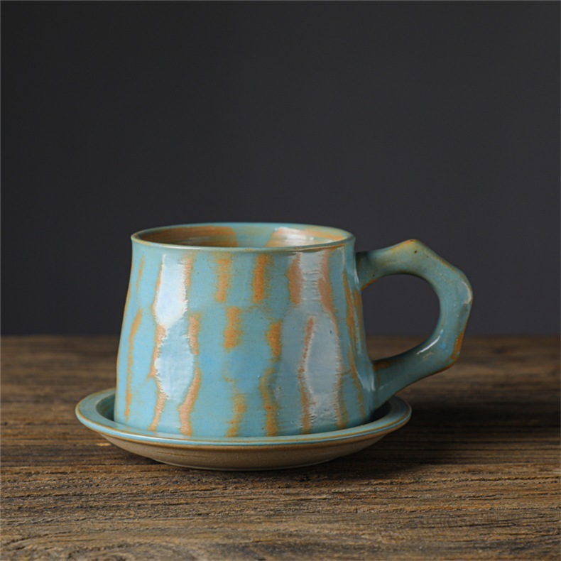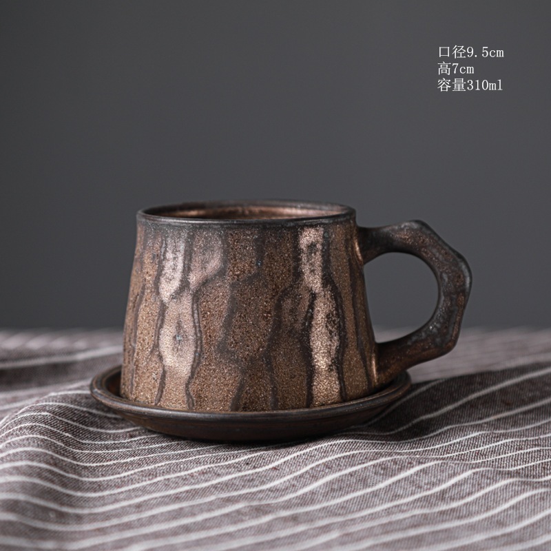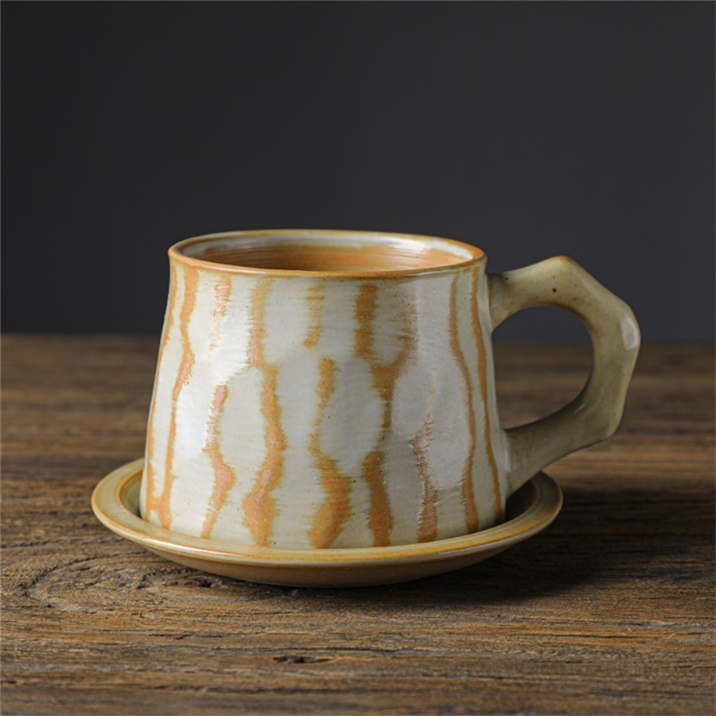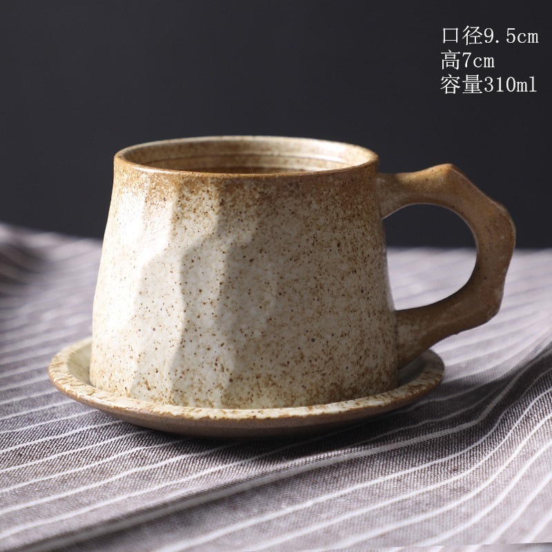 のレトロなセラミックコーヒーカップとソーサーセットクリエイティブスーベニアカップアフタヌーンティーマグストーンウェアコーヒーカップ