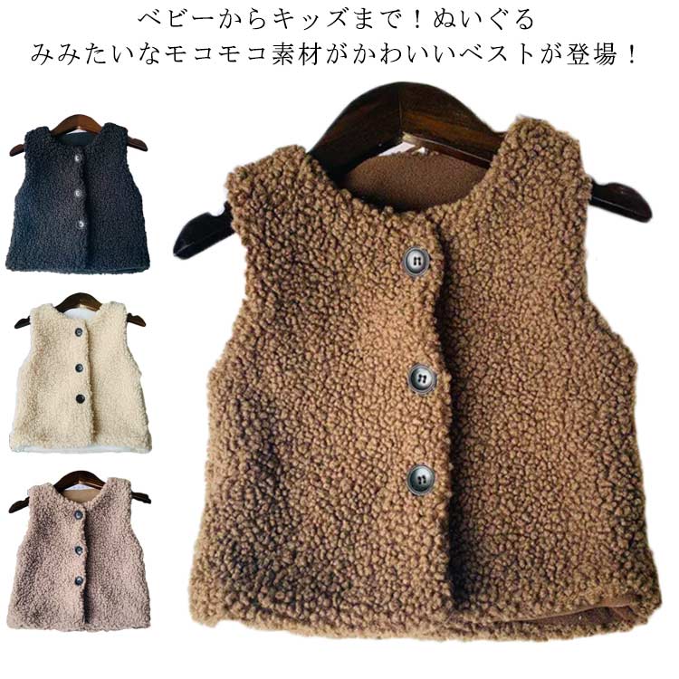 ボアベスト キッズ 子ども 男の子 女の子 アウター ベスト もこもこ ふわふわ 子供服 あったか 子ども 冬 秋冬 防寒 フリース おでかけ 部屋着 ルームウェア 80cm 90cm 100cm 1