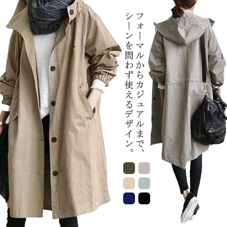 モッズコート 春コート 春 アウター レディース フード付き トレンチ コート ロング オーバーサイズ ゆったり 大きいサイズ マウンテンパーカー 通勤 カジュアル 黒 ブラック ベージュ カーキ ゆ