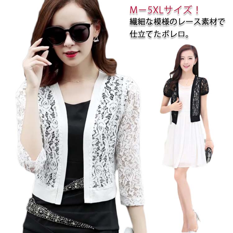サマーカーディガン ショート丈 レースカーディガン ボレロ 総レース コンパクト 7分袖 半袖 長袖 サマー フラワーレース 透け感 羽織り おしゃれ カーディガン