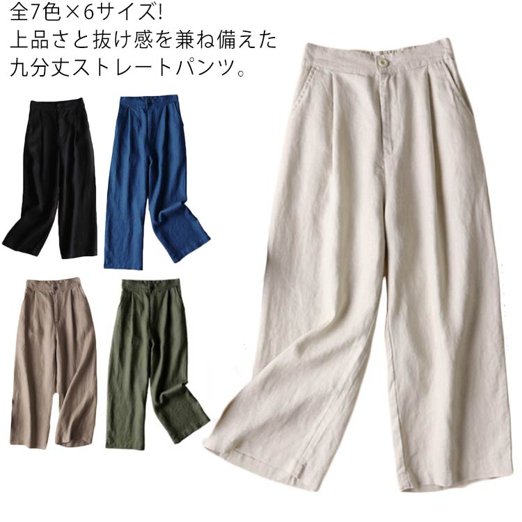 リネンワイドパンツ リネン混ワイドパンツ リネン混 パンツ 無地 ワイドパンツ ガウチョ 麻 亜麻 麻混 タック ゆったり スカンツ パンツ ボトムス レディース ガウチョ 9分丈 春 夏 大きいサイ
