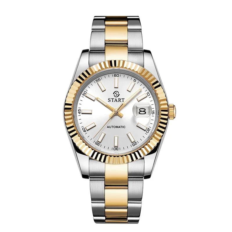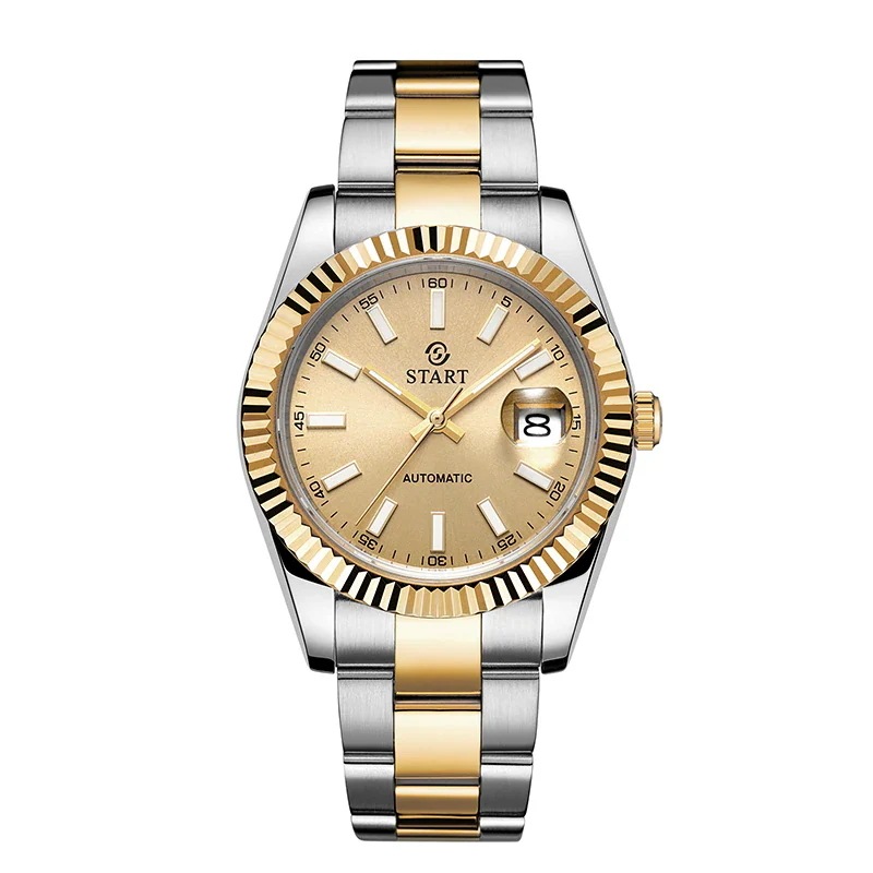 STARTメンズ機械式時計スイスのムーブメントカレンダー機能防水時計夜光目盛ダイヤルゴールド時計