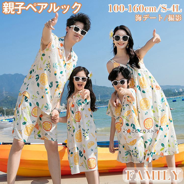 親子お揃い アロハシャツ 花柄 ビーチ旅行 親子ペアルック 水着 撮影 4人 大きいサイズ 親子コーデ ワンピース 家族お揃い ママ パパ シャツ Tシャツ 春 夏 半袖