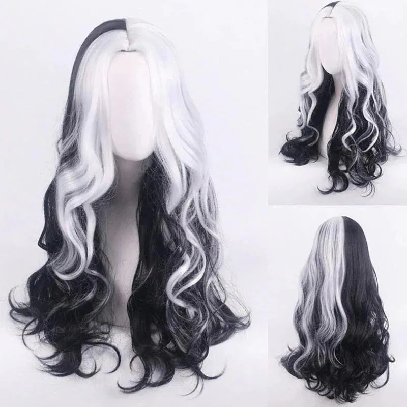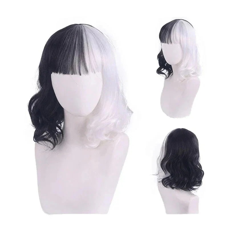 Cos ウィッグ クルエラ デ ヴィル クルエラ 101 忠犬 白黒魔女 カラーマッチング 小さめ ショート 巻き毛22