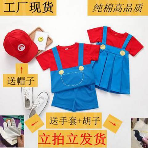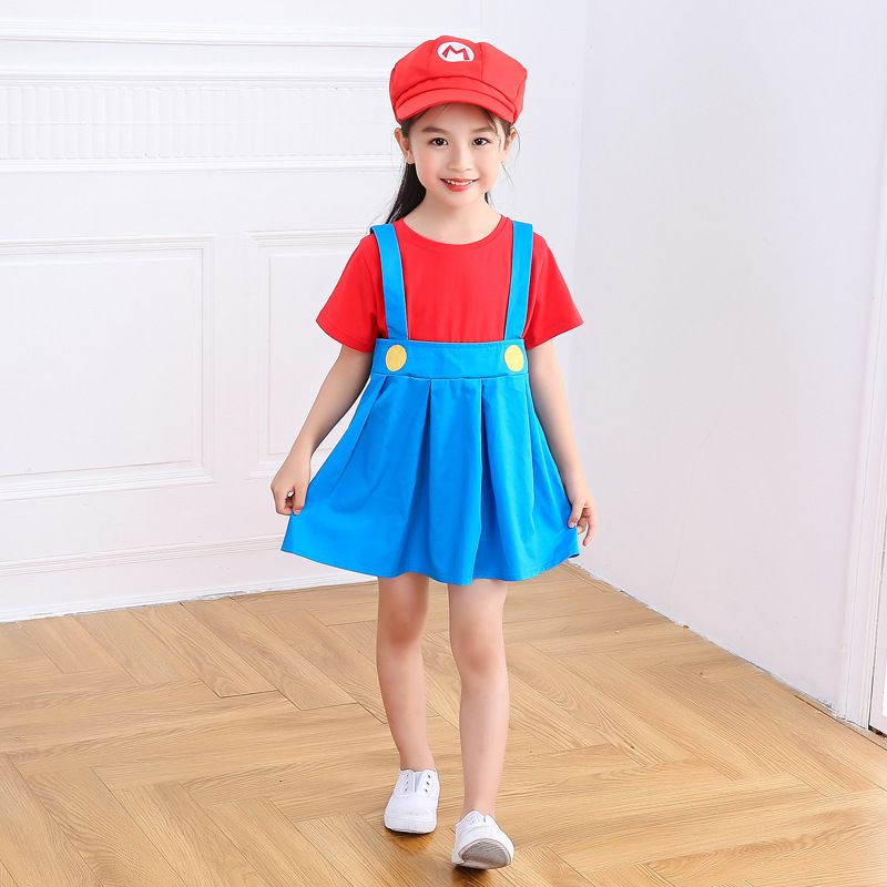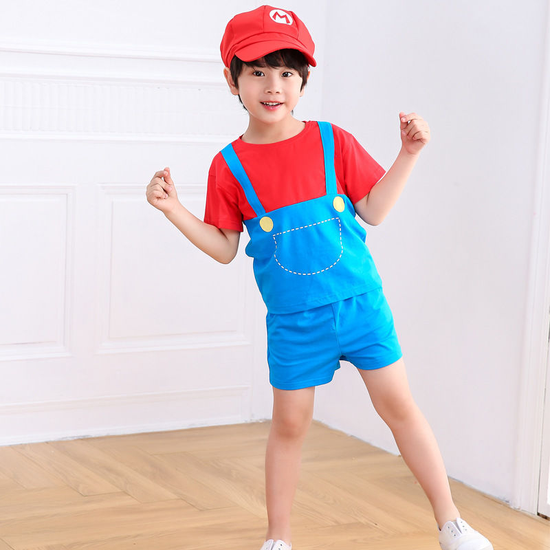 子供漫画パフォーマンス衣装夏かわいい幼稚園小クラス男の子と女の子パフォーマンス衣装スーパーマリオセット ハロウィン ロールプレイ