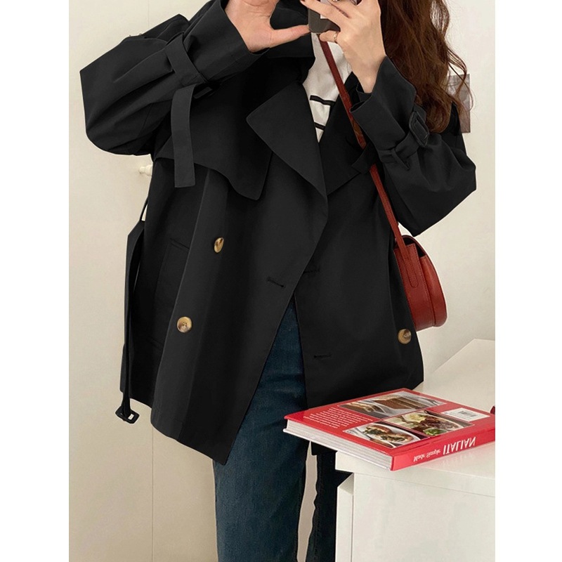 韓国ファッション トレンチコートショット丈 トレンチコート 通勤 通学 春秋 小柄 アウター ジャケット 秋アウター カーディガン トップスジャケット レディースメガ割