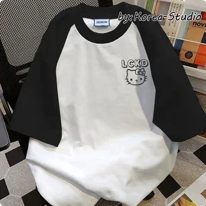 サンリオ【急速出荷】Tシャツラウンドネックスウェットシャツハローキティ hellokitty サンリオ 可愛い SNSで大人気 レディース tシャツ 半袖 224夏服新品 ロングTシャツ 韓国 ストレッチ