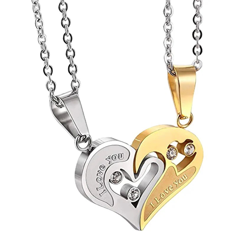 【急速出荷】パンク風カップルネックレス透けるハートCZステンレス色褪せない バレンタインデー 誕生日プレゼント