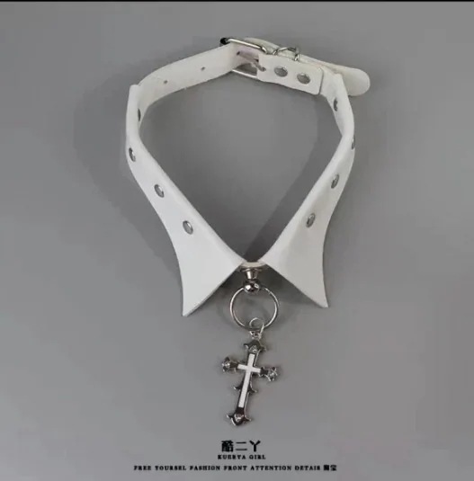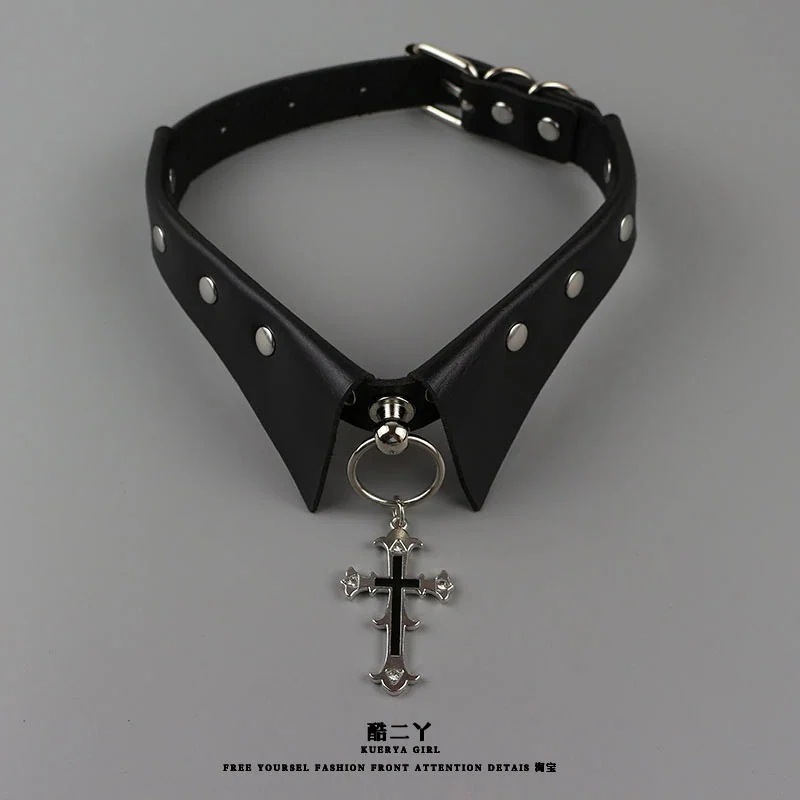 【急速出荷】ハロウィン付け襟クロスカラーダークゴシックパンクチョーカーネックレスメタル鎖骨チェーン