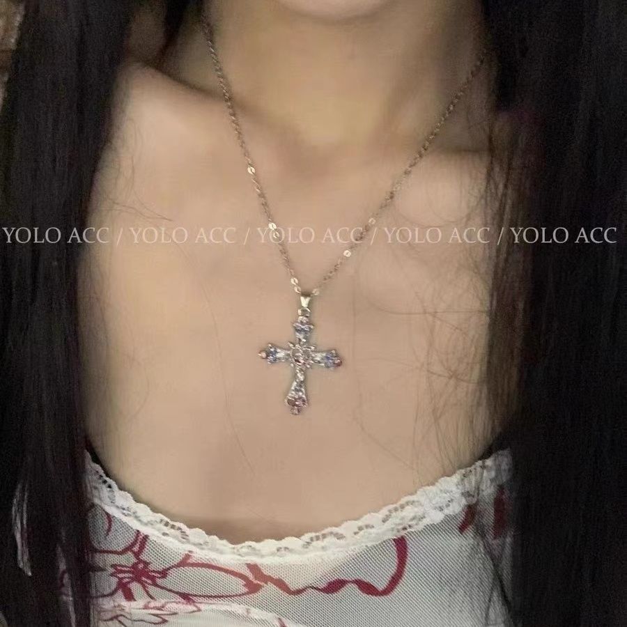 【急速出荷】張元英同項黒十字架チョーカー首輪女小衆双条重ねネックレス皮質首鎖y2k