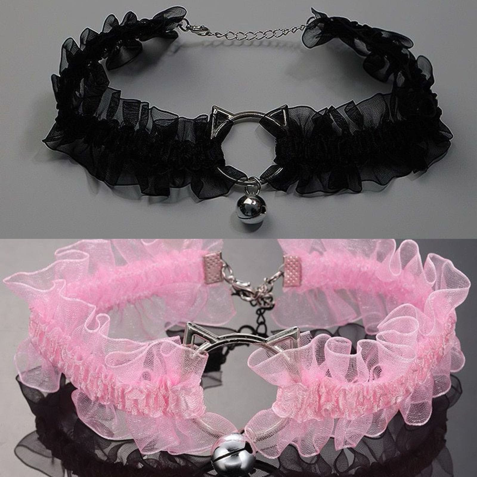 【急速出荷】鈴首輪女性レース首輪首輪首輪r鎖骨鎖猫耳小鈴ネックレス