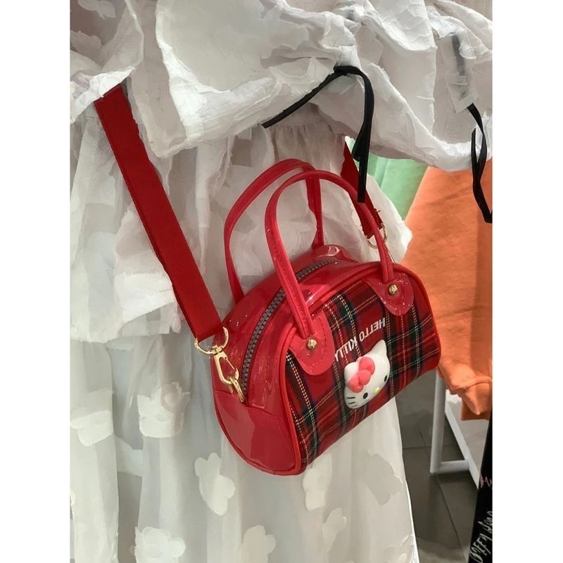 【急速出荷】ハローキティ 猫 ワンショルダー チェック柄バッグ 昭和レトロ y2k ミレニアム かわいい 携帯メッセンジャーバッグ