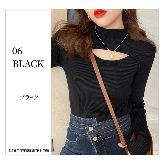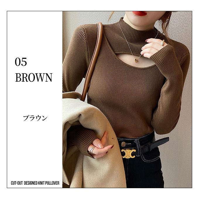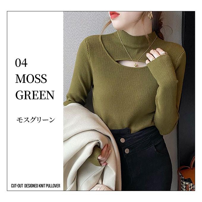 カットアウト トップス 胸開き ニット リブ スリット ホワイト ベージュ オレンジ グリーン ブラウン ブラック