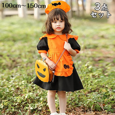 【新作】コスチューム クリスマス 女の子 メイド服 コスプレ 子供 衣装 仮装 かぼちゃ オシャレ パンプキン オシャレ キッズ クイーン コスプレ衣装 デビル かわいい 演出 セット ポンチョ