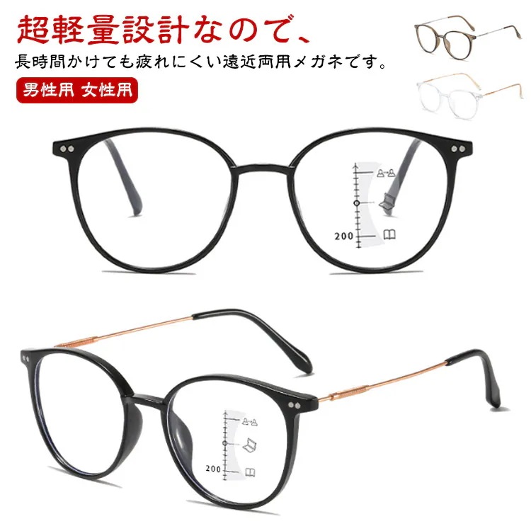 老眼鏡 メガネ ブルーライトカット 度付 遠近両用 メガネ 累進多焦点レンズ 軽量 メンズ レディース リーディンググラス 男性用 女性用 おしゃれ シニアグラス 丸メガネ 父の日 敬老の日 ギフト