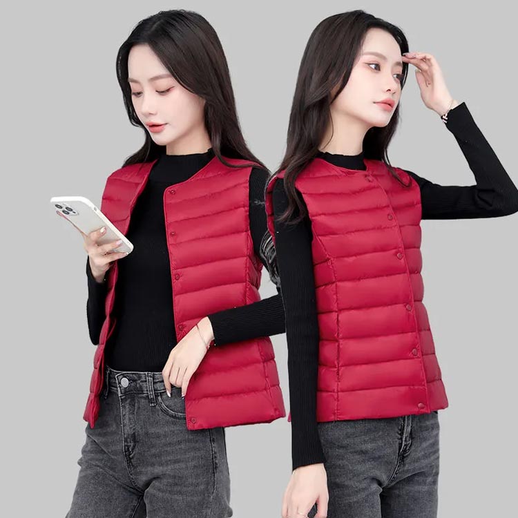 ライトダウンベスト30ショート丈ノーカラー秋冬ダウンジャケットベストコンパクトダウンベスト中綿ベストスリムレディースファイバーダウン軽量薄大きいサイズ暖かいあったか防寒保温おしゃれ4050大人インナー