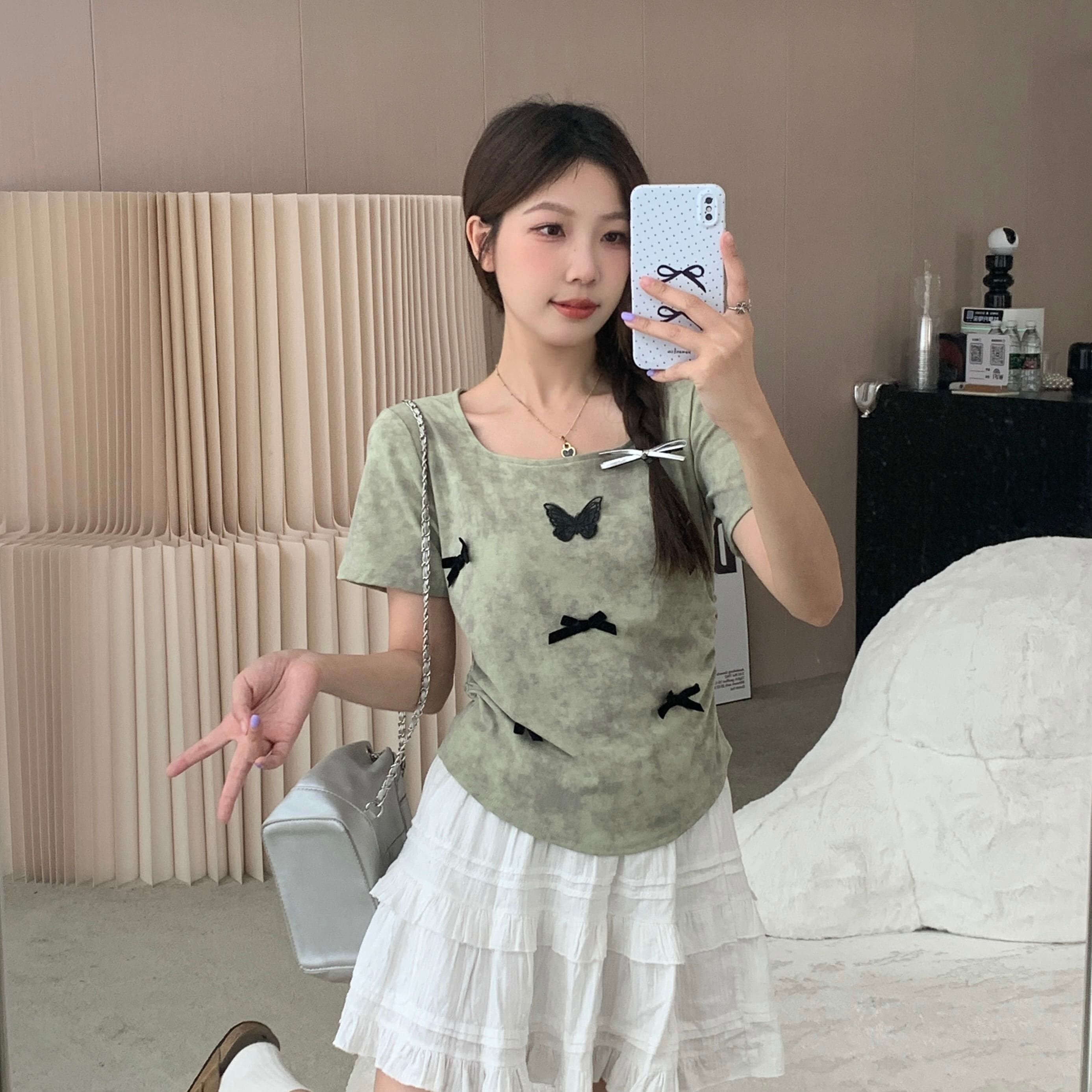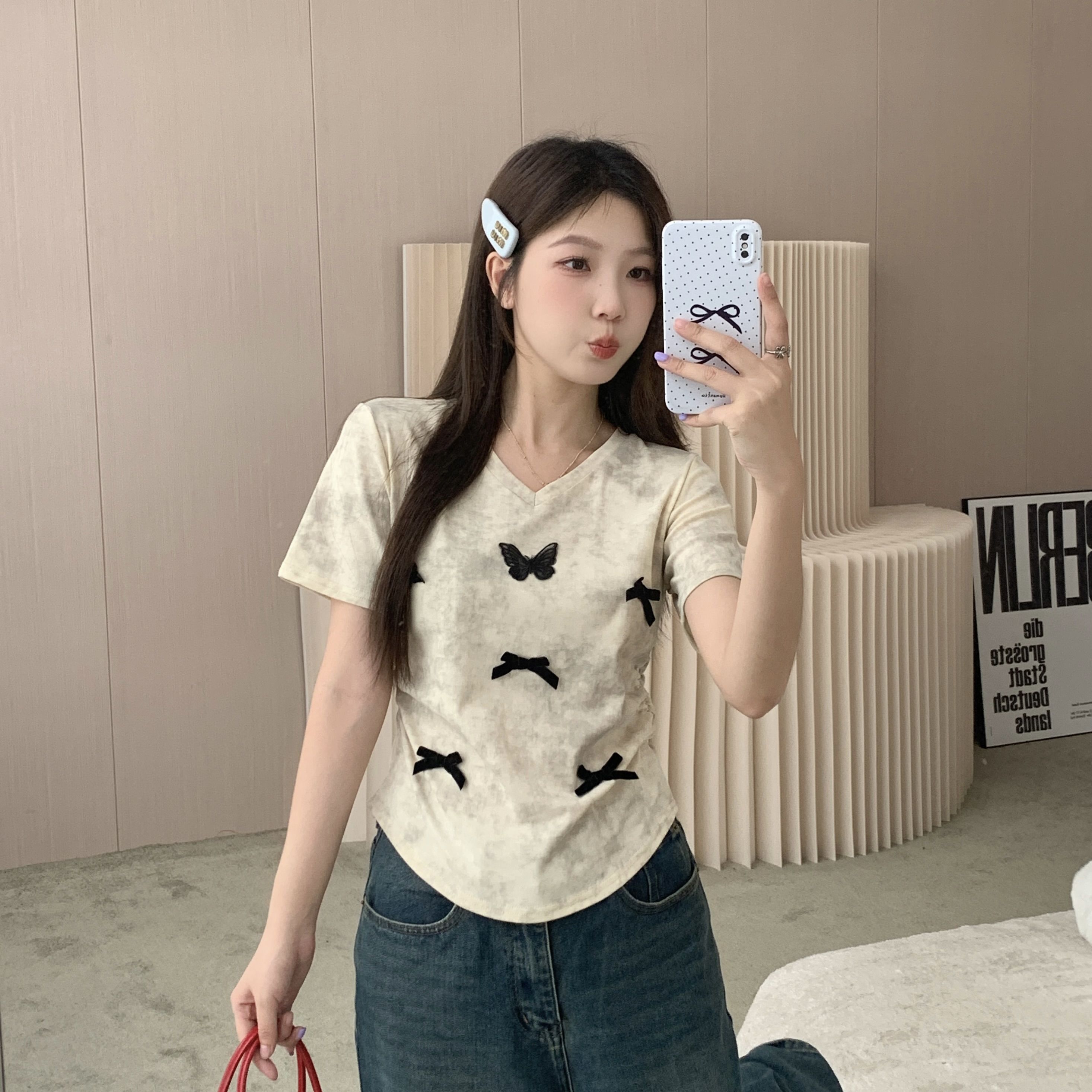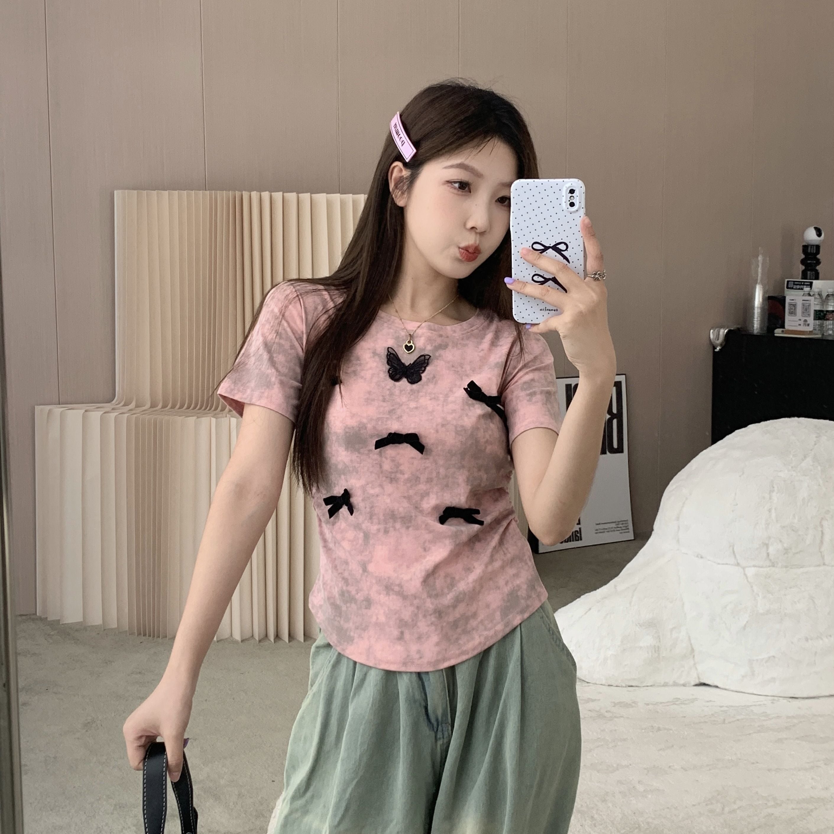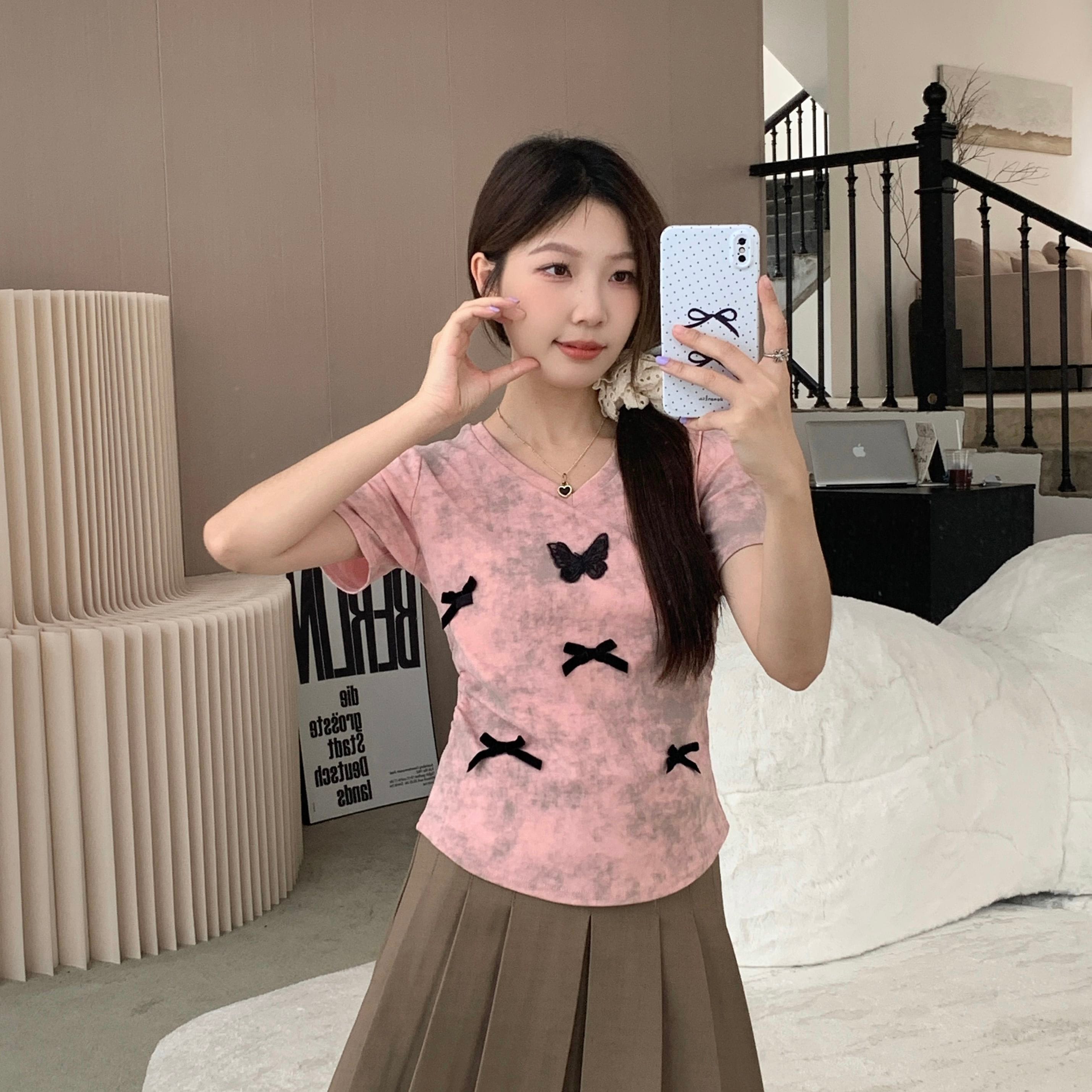 tシャツ 2024 新作 韓国ファッションク セミロング 半袖 Tシャツ UVカット tシャツ 半袖 レディース Tシャツ ロングTシャツ Vネック 着痩せトップス大きめ蝶結び