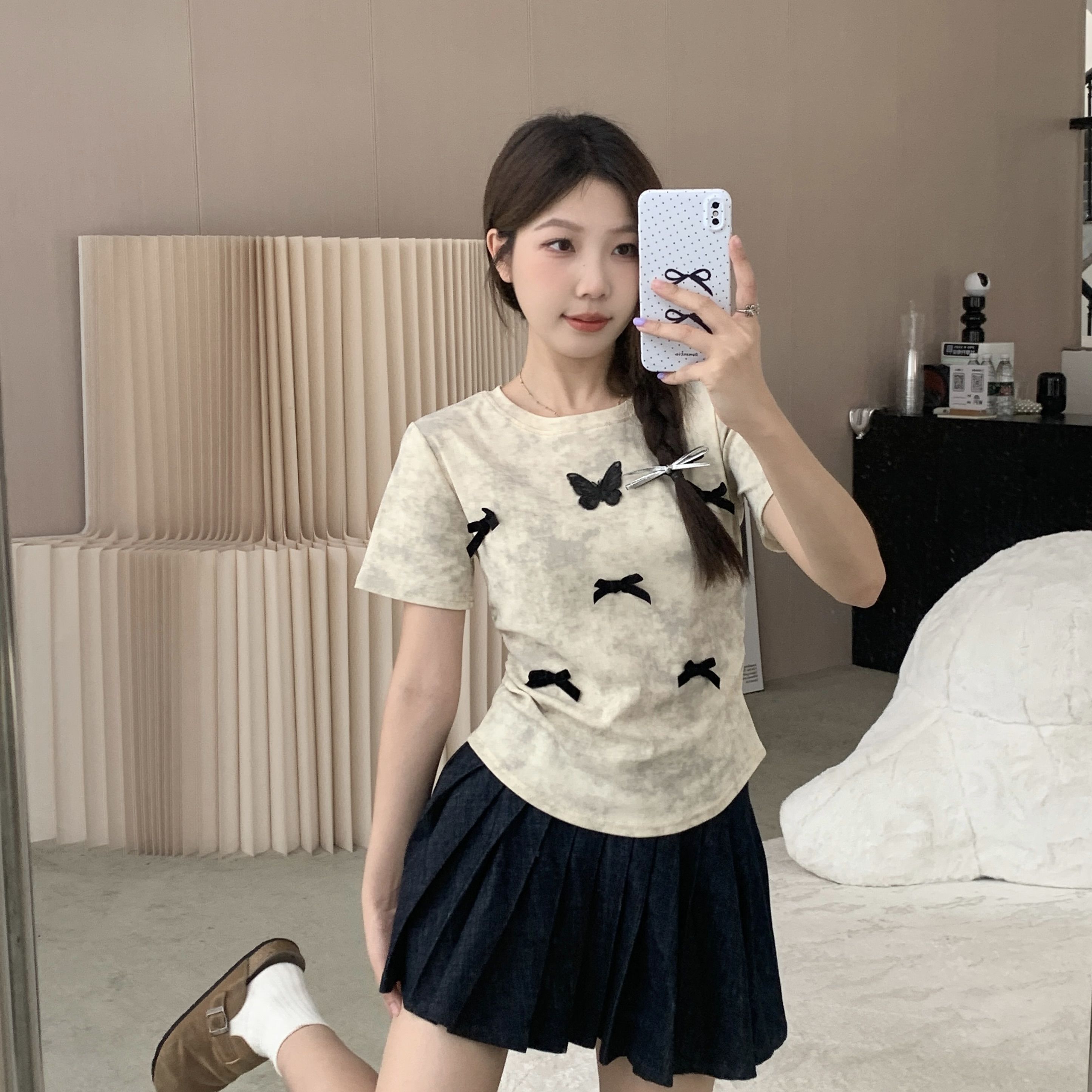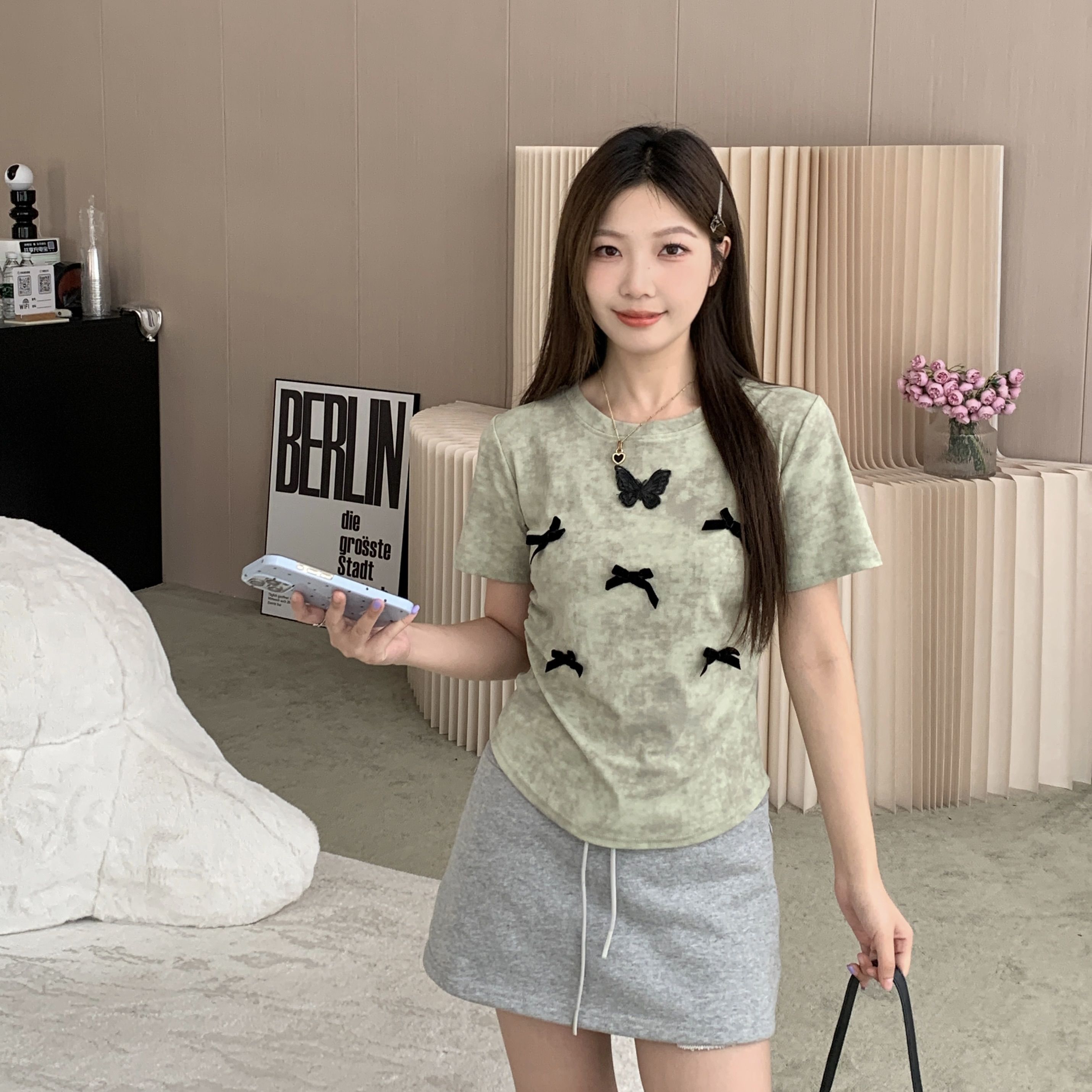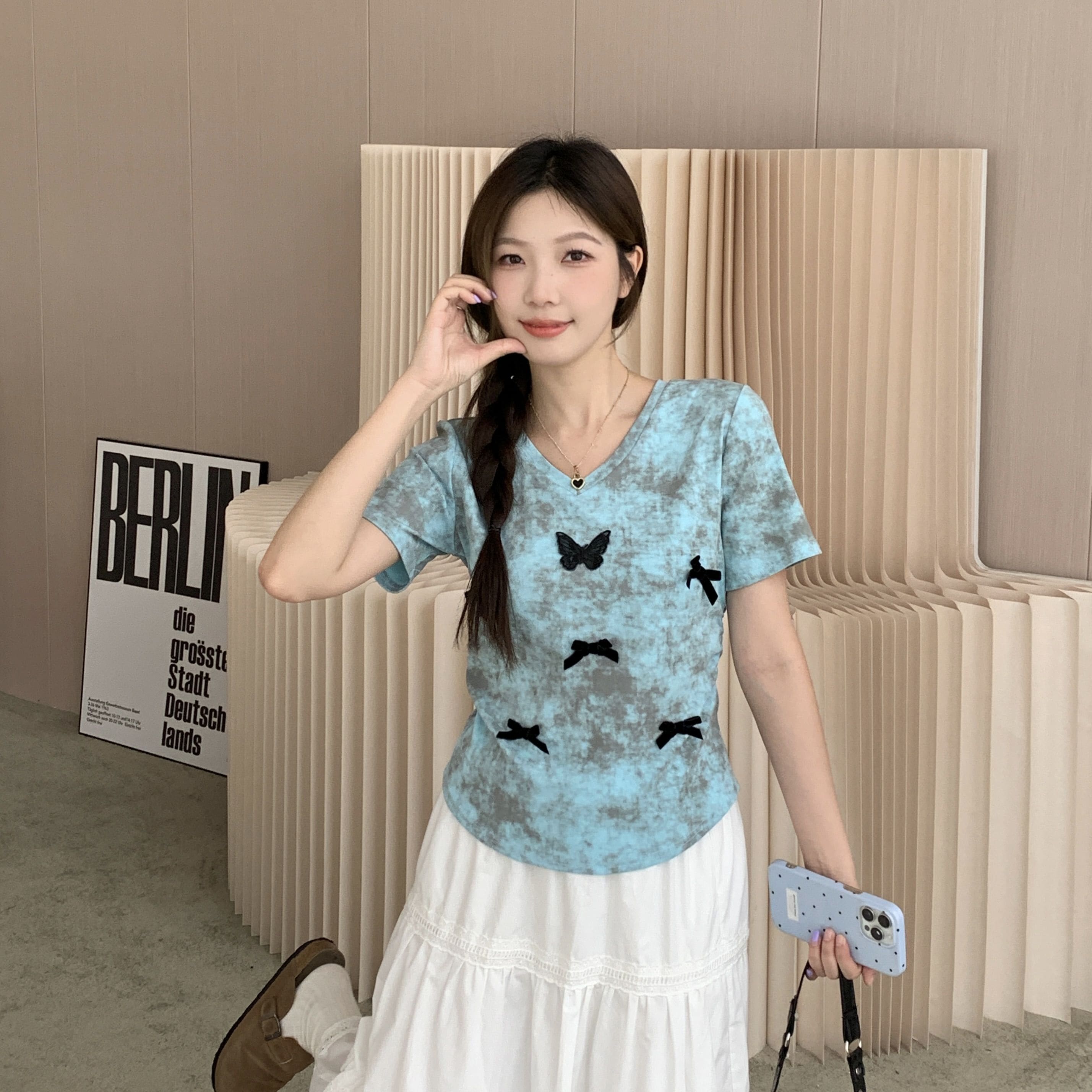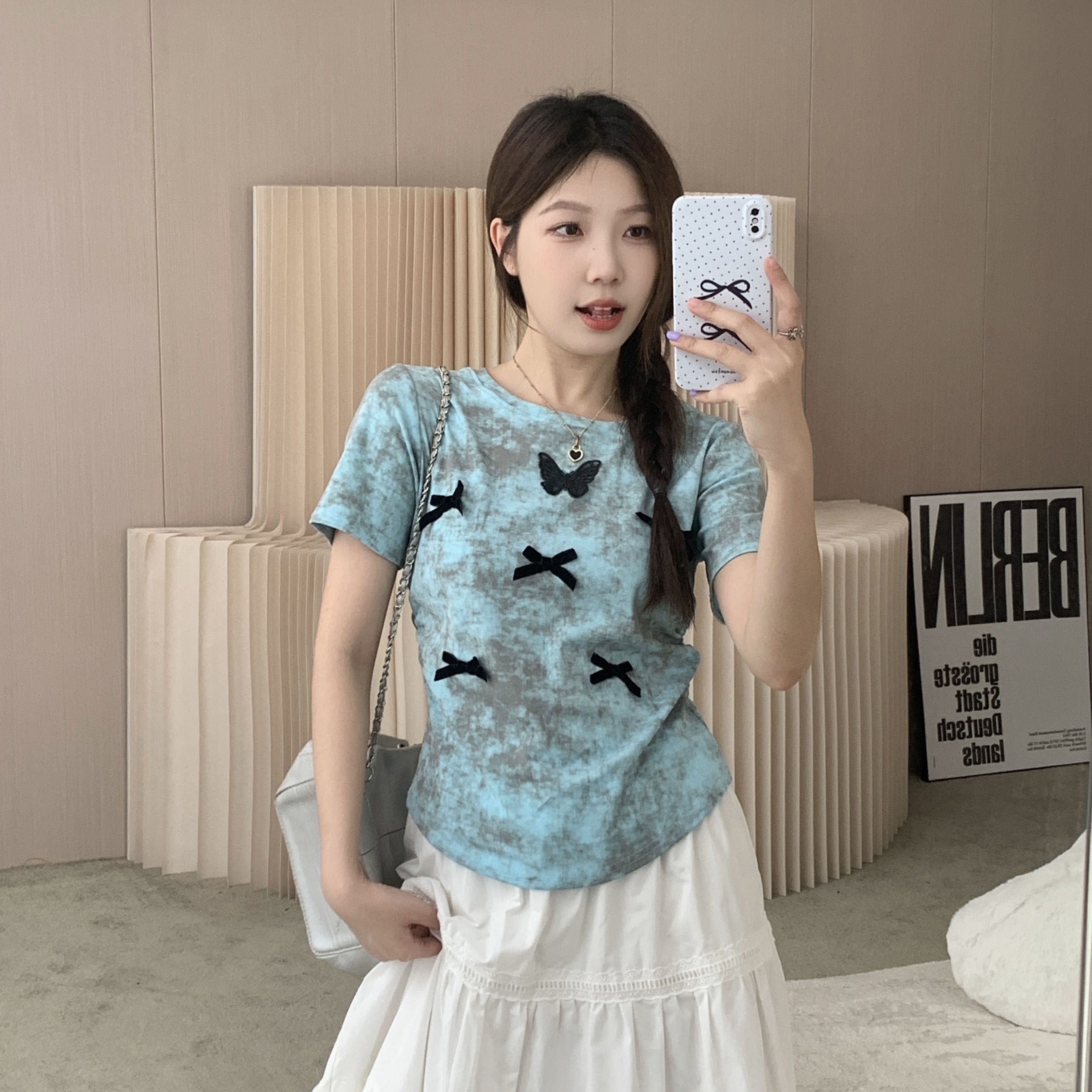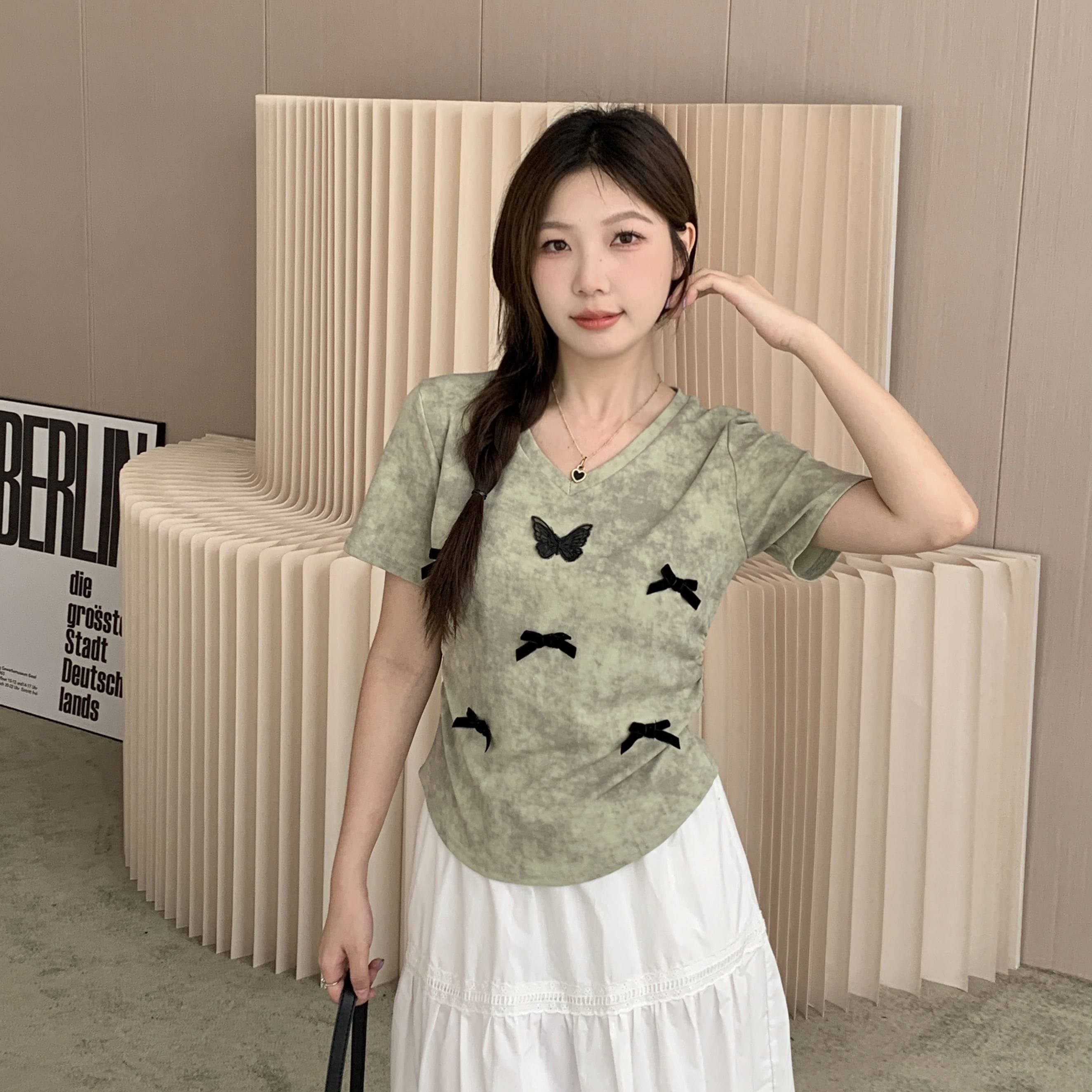 tシャツ 2024 新作 韓国ファッションク セミロング 半袖 Tシャツ UVカット tシャツ 半袖 レディース Tシャツ ロングTシャツ Vネック 着痩せトップス大きめ蝶結び