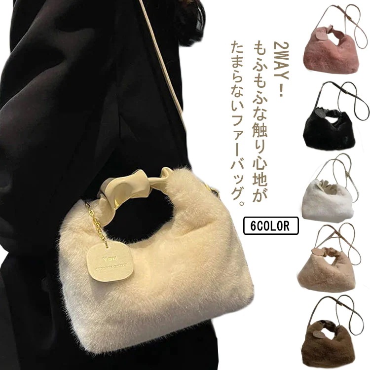 ファーバッグ ショルダーバッグ 2WAY トートバッグ 小さめ ミニトート エコファー 斜めがけ ミニショルダー ミニバッグ フェイクファー 軽量 軽い ふわふわ かわいい 秋冬 かばん 鞄 小さめ