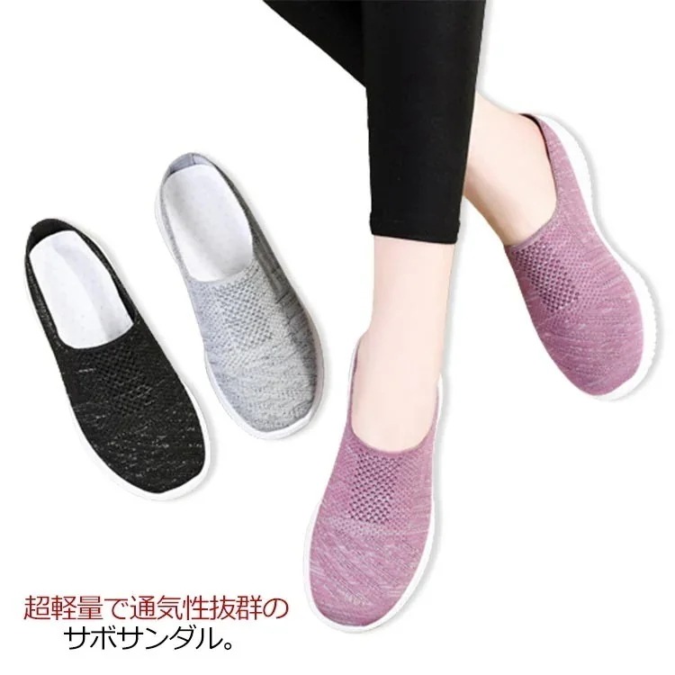 ニットスニーカー かかとなし サボサンダル コンフォートシューズ スリッポン レディース 上履き 超軽量 メッシュ 外反母趾 シューズ ウォキングシューズ 春夏 40代50代60代70代 ミセス 靴