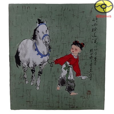 ろうけつ染めの絵Chinese painting style Handmade Folk Art Wall Hanging Batik Tapestry Boy With Horse 44x39cm