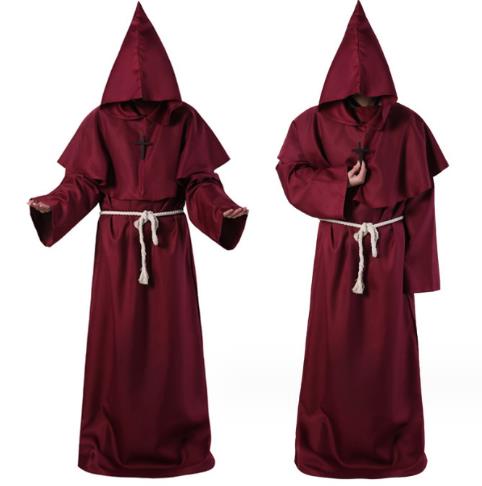 4点セット 中世 修道士 神父 牧師 僧侶 ロング フード ローブ 大人 男性用 コスチューム ハロウィン コスプレ 仮装 変装 パーティー 十字架ステージ衣装 クロス贈る