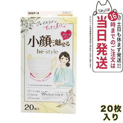 白元アース【20枚入り】白元マスク ビースタイル プリーツタイプ ふつうサイズ プレミアムホワイト