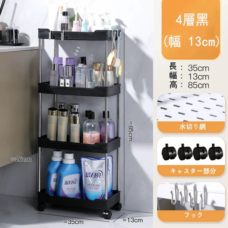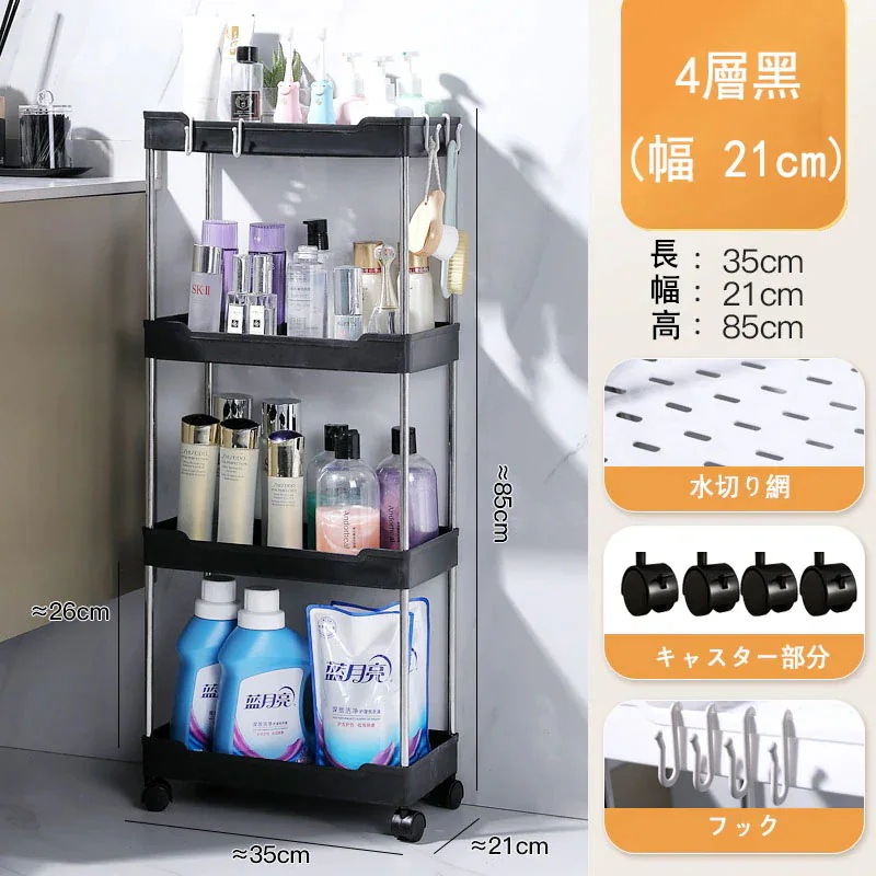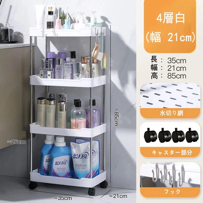 キッチンワゴン 収納棚 収納ワゴン 収納ラック 本棚 組立簡単 収納カート 小物 軽量 4段 キッチン 寝室