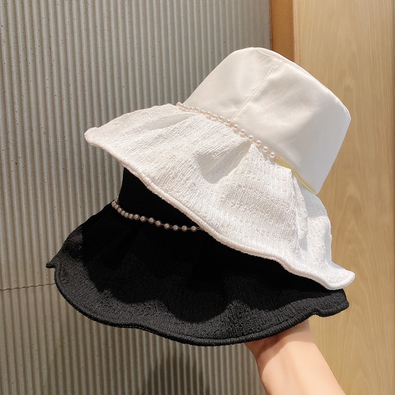 パールハットサンハットと秋の女性の折り畳み式の白い顔小さな漁師の帽子通気性のある夏の日焼け止めサン