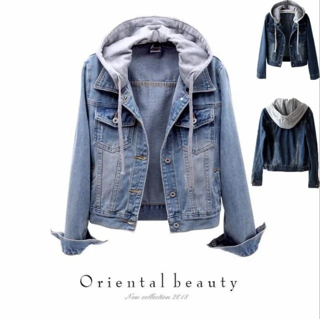 【2024新作】[急速出荷] レディース 長袖ジャケット フード付き 2色 Gジャンデニム ジャケット 春物デニムピーコート背が高く見せる