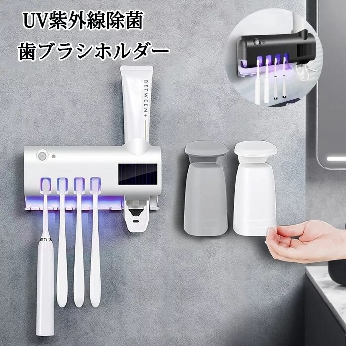 [Limos] 歯ブラシスタンド 自動除菌 UV UV収納ホルダー 2カップ付 ソーラーパネル4枚 USB洗面台 インテリア 装飾