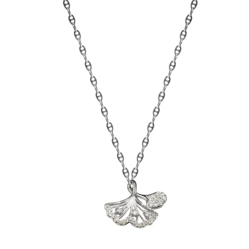 イチョウネックレス レディース韓国版小生葉チョーカーネックレス ラグジュアリーフラッシュダイヤモンドスピリチュアルダブルアプリコットリーフカラーボーンチェーン