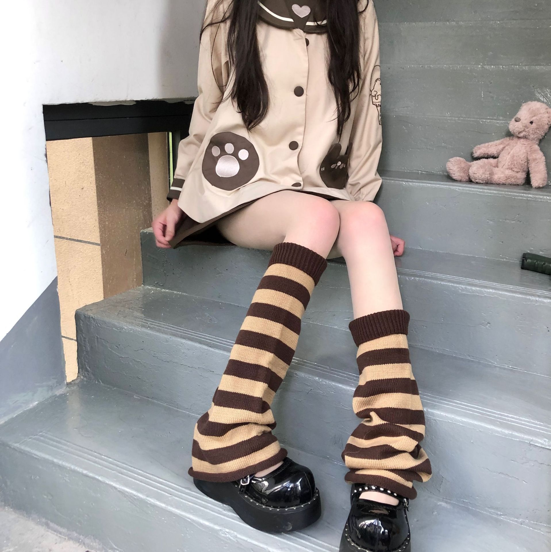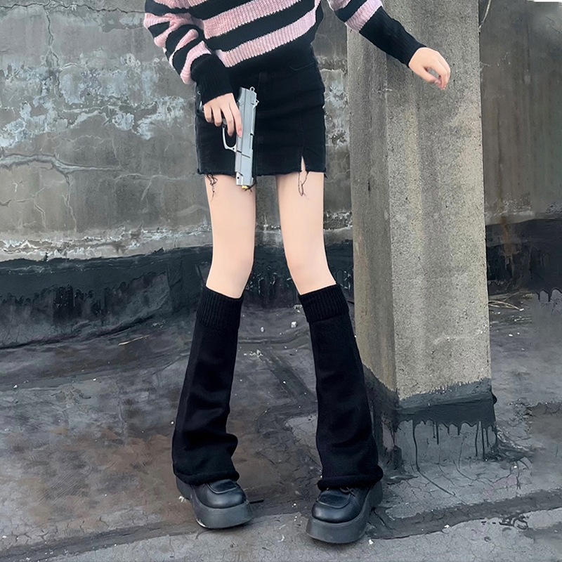 しま模様 靴下のカバー サブカル ありのまま 韓国版 秋冬 ニット すね靴下 毛糸 あたたまること レッグカバー