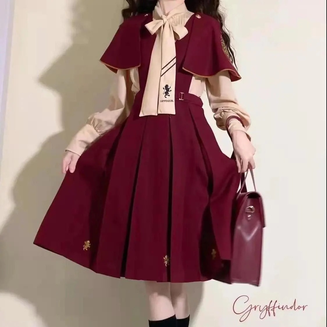 超人気,高評価!!ハリーポッター 秋スーツ女子学生韓版ゆるい日系マントショール蝶ネクタイシャツストラップワンピース3