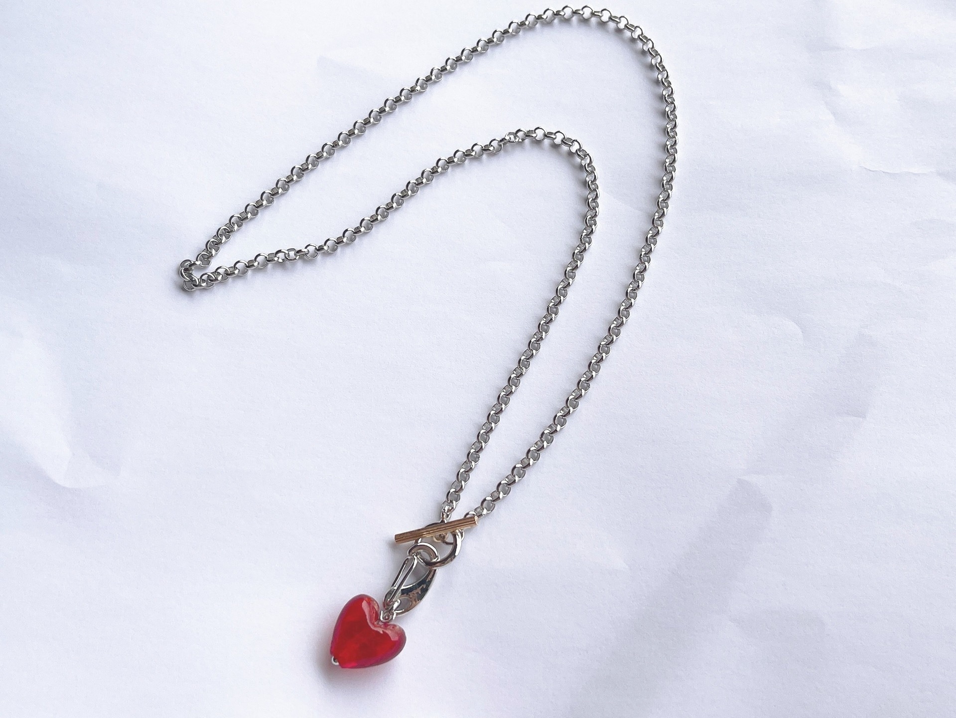 Qoo10限定stray kids ネックレス Felix Hyun-Jin アクセサリー stray kids着用 ハート レッド チェーン付 メカ割 美しい首元ネックレス