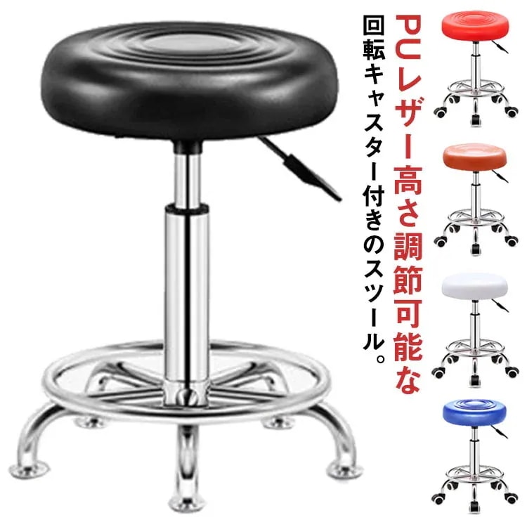 風がキャスター付き 回転椅子 ミニ スツール ネイル 高さ40-53cm フット クッション ローラーシート フットケアスツール オフィス家具 厚 低め 合成皮革 背もたれ無し 事務 丸椅子 キ