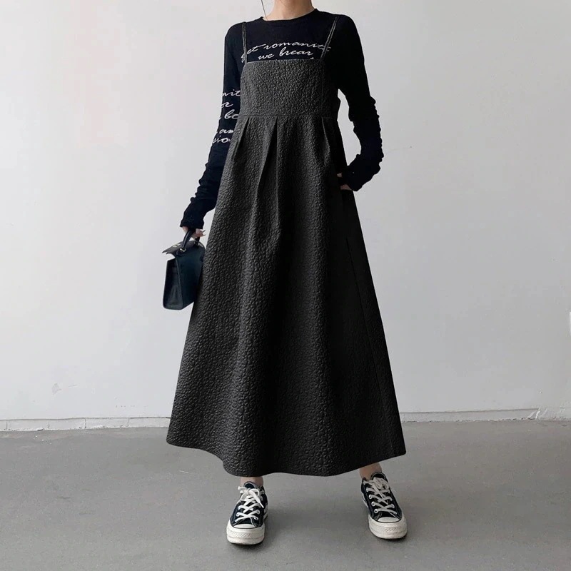 綺麗め可愛いお洒落楽ちんジャガードサロペットキャミソールワンピースエンボス加工ジャンパースカートマタニティー体型カバー通勤通学オフィスお出掛け