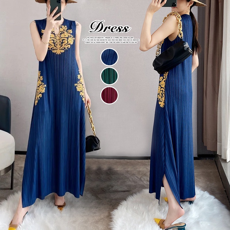 【送料無料】B25レトロワンピース女夏の新作プリントノースリーブワンピース女