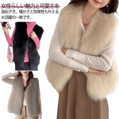 急速出荷 ファーベスト ジレ レディース ファーコート ファージャケット ノースリーブ フェイクファー エコファー ショート丈 ノーカラージャケット アウター 羽織り 秋冬 ふわふわ もこもこ レイヤ