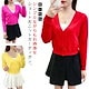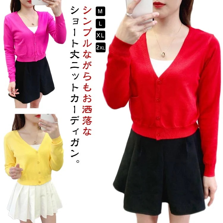 急速出荷 ニットカーディガン レディース カーディガン ショート丈 リブニット 長袖 Vネック ショートカーディガン ストレッチ 伸縮性 羽織 肩掛け 冷房対策 送料無料 春 秋 オフィス 通学 事務