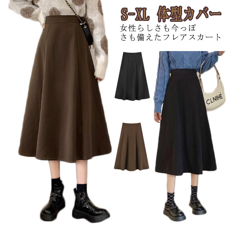 急速出荷 スカート ロングスカート ウエストゴム ゴム 大きいサイズ ロング丈 ロング マキシ丈 マキシ丈スカート 体型カバー フレアスカート ボトムス フレア ロング マキシスカート 秋 ボリューミ