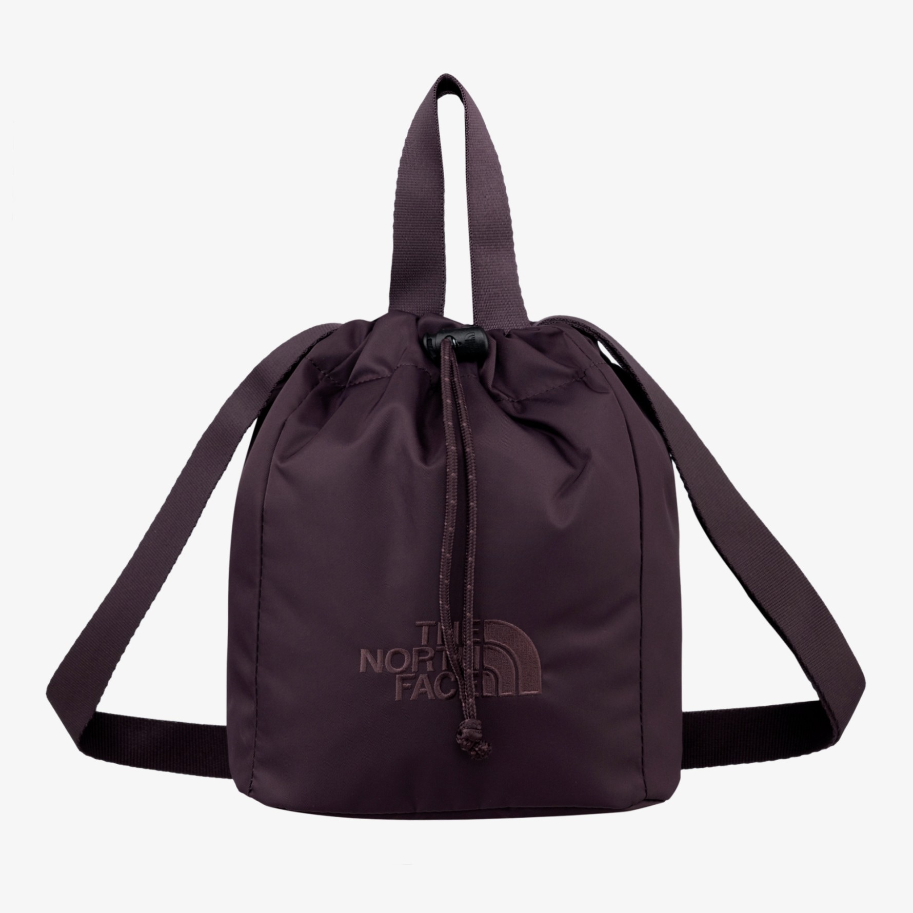 絞り止めがグレー、紐はベージュとグレーで、ロゴはプリント、素材はガサガサした頑丈な感じ。