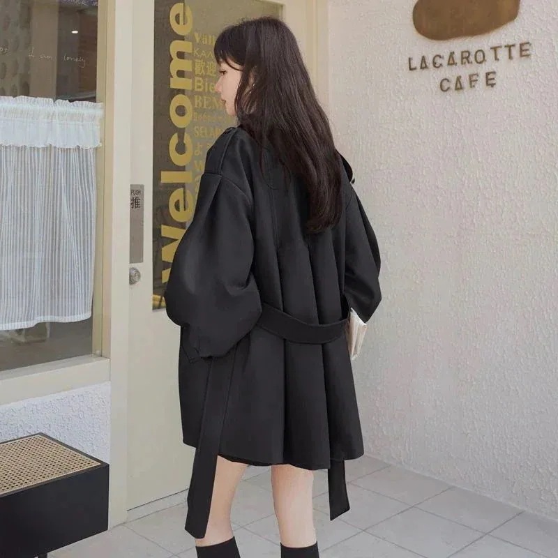 ジャケット 秋アウター 女性用コーヒーショートウインドブレーカージャケット緩い2024春と秋の新しい韓国スタイルインス小さなランタンスリーブコート 韓国ファッション