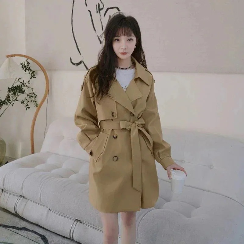 ジャケット 秋アウター カーキの気質ウインドブレーカー女性 2024 春と秋の新しいスタイルのスモールジャケットコートスリムフィットミッドレングスジャケット 韓国ファッション
