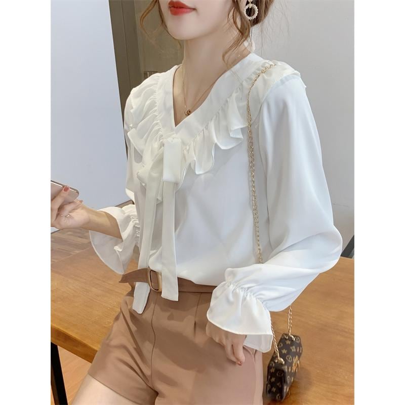 ブラウスシャツレディースワイシャツシャツフォーマルビジネススーツ白ホワイトフリルサテン長袖フィスカジュアル