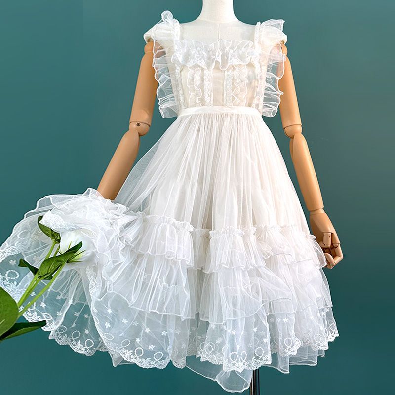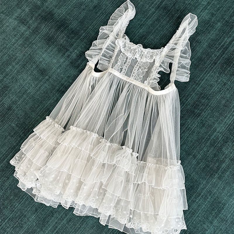 小さなロマンチックなレースメッシュ甘くて美しいレイヤードかわいいオーバースカートストラップドレス