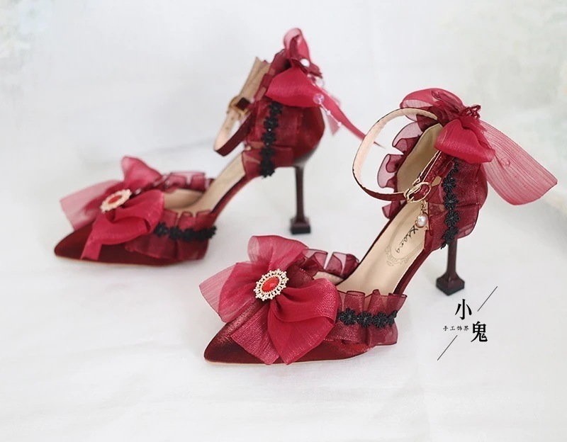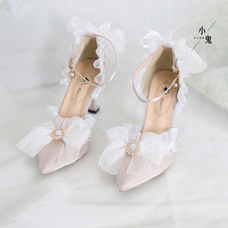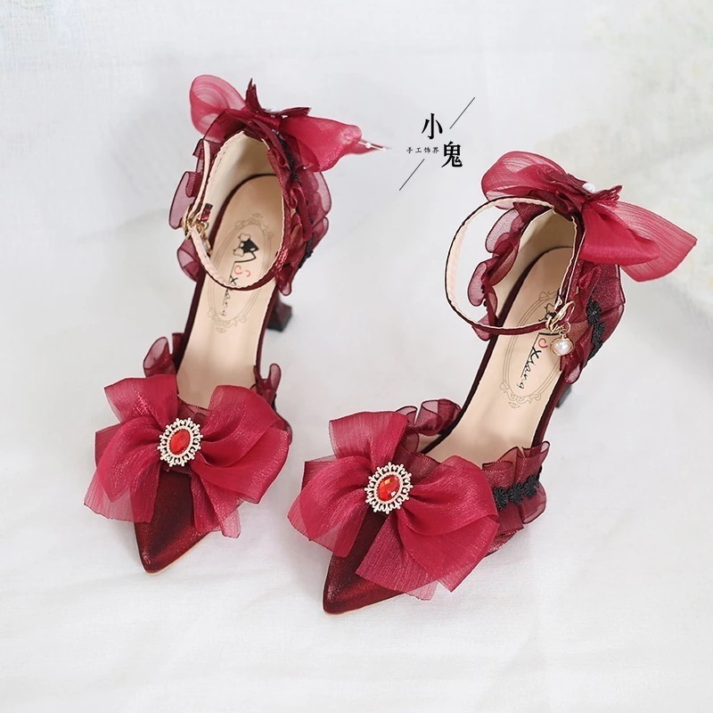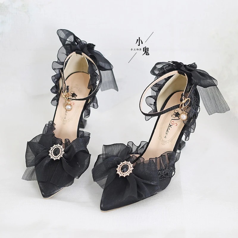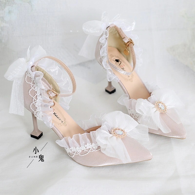 マルチカラーブラックブライダルロリータ成人式ベージュハイヒールポインテッドトゥロリータサンダルフラ
